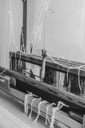 Eine Werkstatt mit Geschichte - Unsere Produkte entstehen an historischen Handwebstühlen, die allesamt ihre eigene Geschichte erzählen können. Fast alle stammen von privaten Dachböden, einige sogar aus ehemaligen Roßweiner Webereien. Mit viel Liebe zum Detail wurden die unterschiedlichen Webstühle von Jörg aufgearbeitet, mit technischen Raffinessen versehen und wieder funktionstüchtig gemacht.